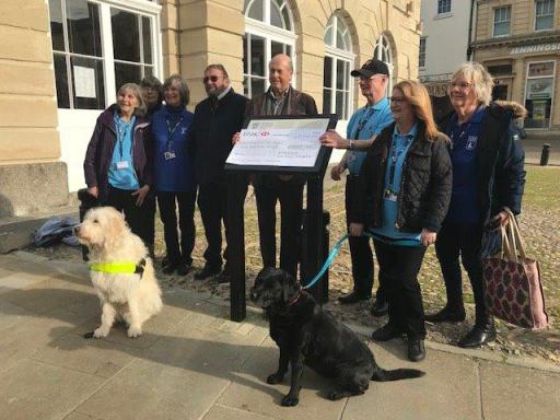 present a cheque for £1000 on behalf of Andover Golfing Society. This picture is the best of a doubtful bunch of snaps taken by my wife Julia, who was more interested in the dogs. Receiving the money